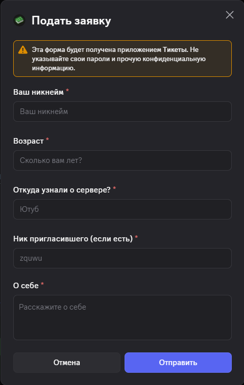 - Готово! Осталось пройти взаимодействие с модерацией в вашем тикете, после чего вам будет вадан доступ к серверу!